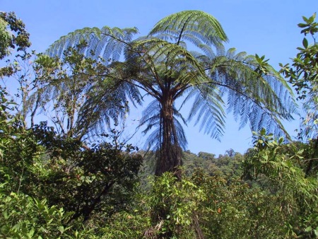 Baumfarne besiedeln die Erde seit ca. 400 Millionen Jahren und werden zu den lebenden Fossilien gezählt. Baumfarne aus Brasilien sind nach dem Washingtoner Artenschutzabkommen geschütz. Daher sind nur Xaximplatten aus asiatischen Beständen im Handel. Abb.: Baumfarn aus Mittelamerika