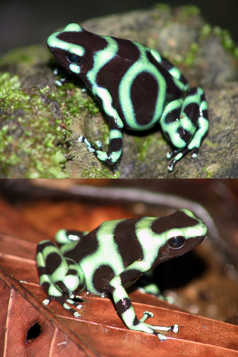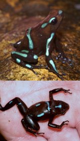 ![]() Abb.: ()Dorsal- und Ventralansicht der Nominat-Morphe von Dendrobates auratus von der Insel Taboga. © 2008 () | Größe vergleichen: Dorsal- und Ventralbild vergleichen: Hand- und Fußabbildung vergleichen: |