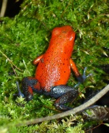| Größe Mittelgroßer Dendrobatide mit einer von 19 - 22 mm. Die Vermessung von 63 Individuen aus 6 Populationen ergab eine durchschnittliche KRL von 20,42 mm +/- 0,79 mm (aus HAGEMANN, 2005 nach KARSCH, 2004). Tab.: Kopf-Rumpf-Länge und Gewicht (Mittelwerte und Standardabweichung) verschiedener Populationen von O. cf. typographa Daten nach HAGEMANN (2005)