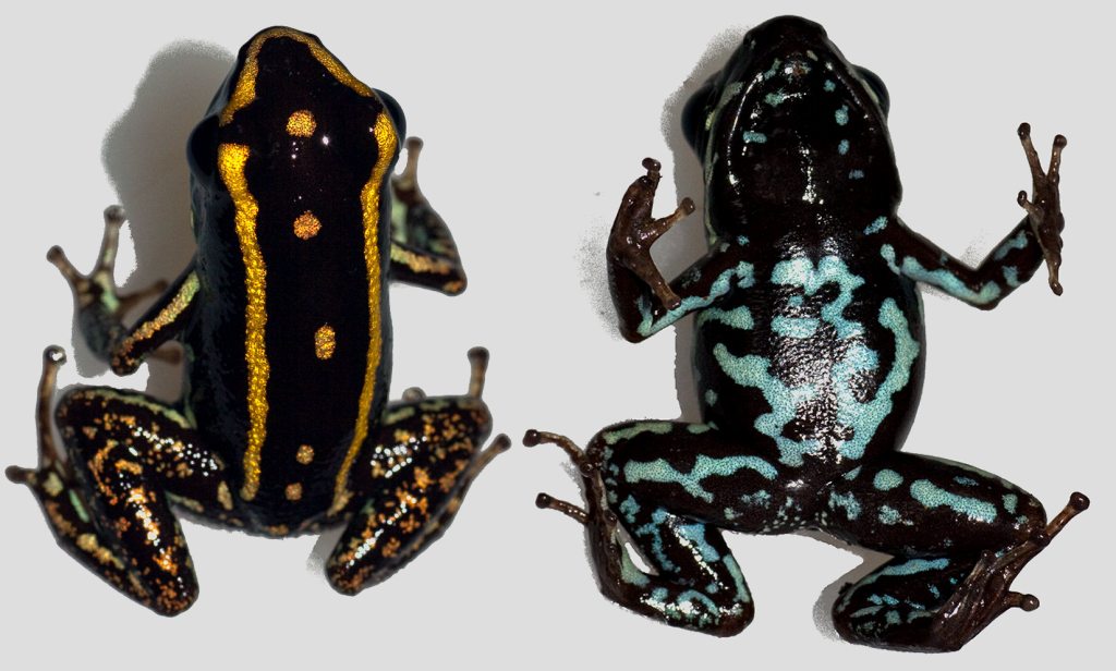 ![]() Abb.: ()Dorsal- und Ventralansicht Phyllobates lugubris "Buena Esperanza" © 2008 () | Dorsal- und Ventralbild vergleichen: |