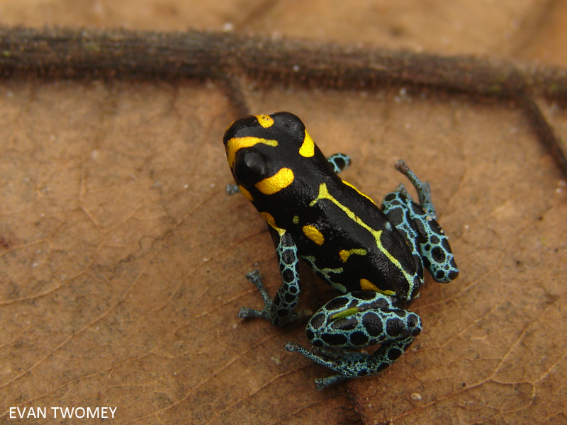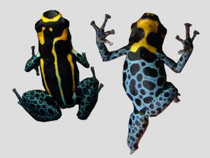 ![]() Abb.: ()Dorsal- und Ventralansicht Ranitomeya defleri © 2009 Evan Twomey & Jason L. Brown | Größe vergleichen: Dorsal- und Ventralbild vergleichen: |