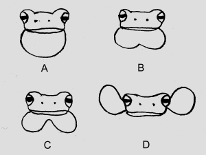 Die Frösche der Überfamilie Dendrobatoidea besitzen, wie auch unser einheimischer Laubfrosch (Hyla arborea), alle eine einzelne Kehl ständige (subgulare) Schallblase (Abb. A). Der ebenfalls heimische Wasserfrosch (Rana esculenta) besitzt dagegen zwei paarig lateral (seitlich) angeordnete Schallblasen (Abb. D). Abb. B zeigt eine zweilappige (bilobular) subgulare Schallblase und Abb. C paarig subgulare Schallblasen